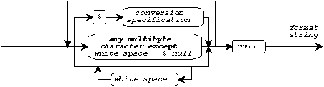 A format string consists of zero or more conversion specifications interspersed with literal text and white space. White space is a sequence of one or more characters c for which the call isspace(c) returns nonzero. (The characters defined as white space can change when you change the LC_CTYPE locale category.) For the print functions, a conversion specification is one of the print conversion specifications described below.
